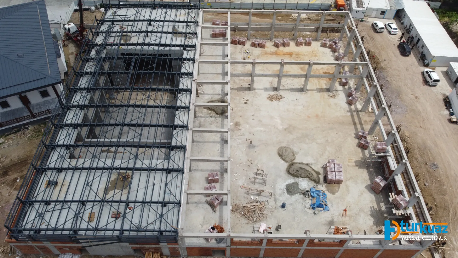 "12.000 m² çelik yapı alanı ve 20.000 m² kapsamlı kaplama uygulamasına sahip, toplam 1.100 ton çelik kullanılarak inşa edilen bu proje; devasa ölçeği ve modern mühendislik detaylarıyla tamamlanmış, yüksek kapasiteli bir endüstriyel yapıdır."