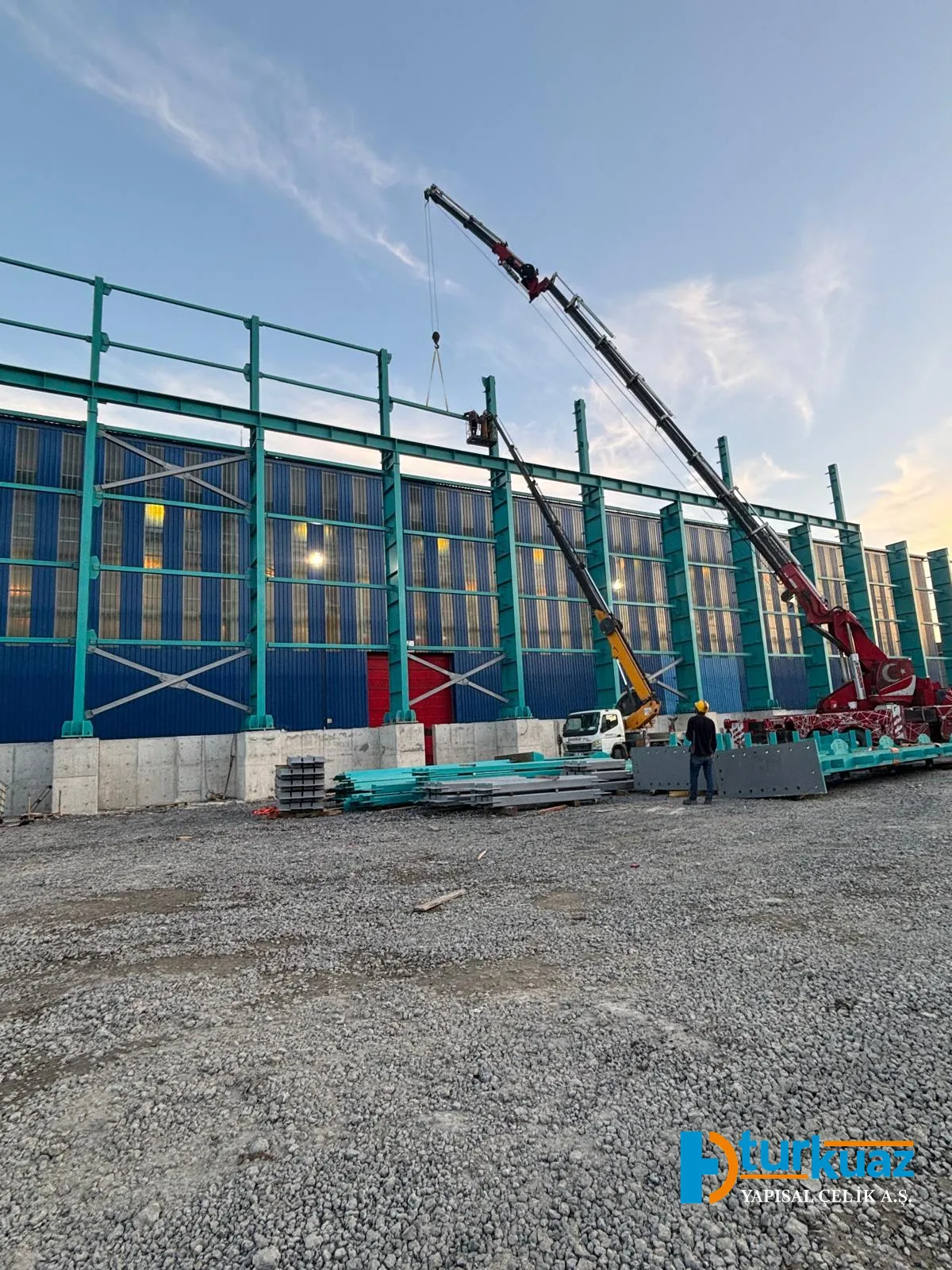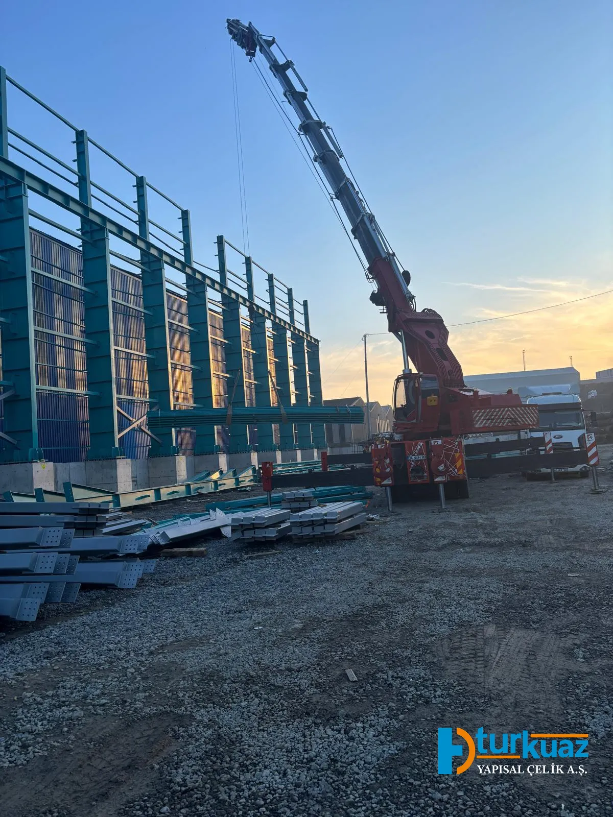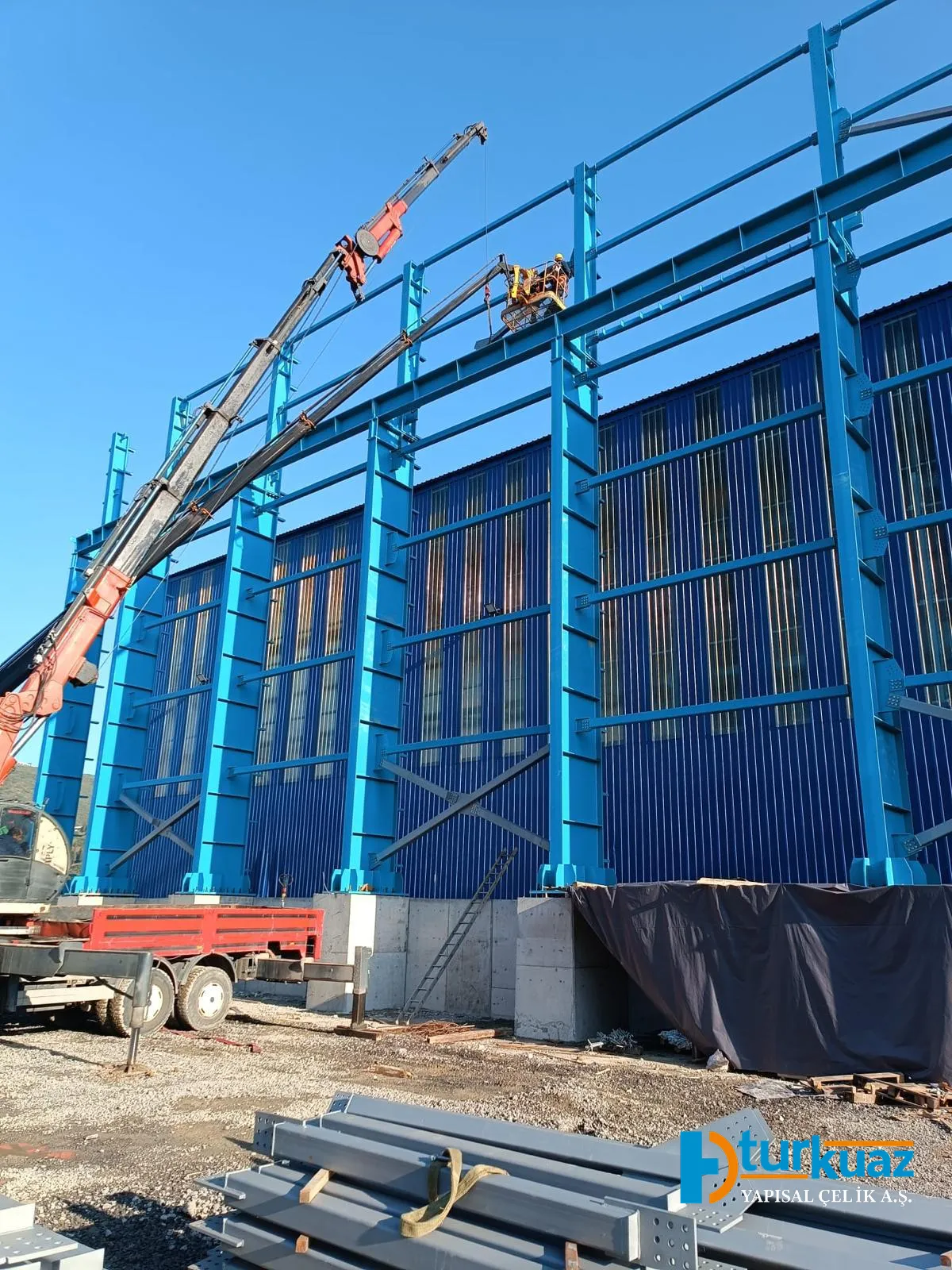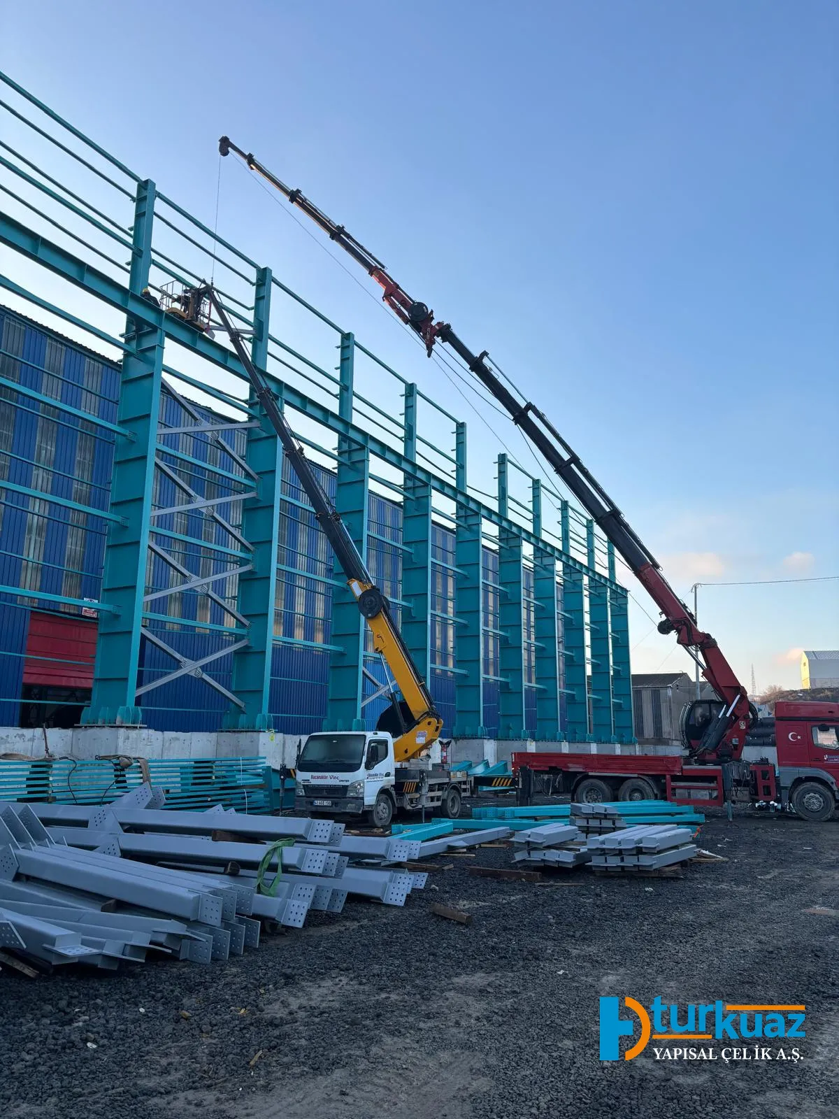 "4.175 m² kapalı alana sahip ve toplam 1.050 ton çelik kullanılarak inşa edilen bu proje; modern mühendislik prensipleriyle tasarlanmış, geniş ve işlevsel iç mekanlara sahip, yüksek dayanıklılık standartlarında tamamlanmış bir çelik konstrüksiyon yapısıdır."
