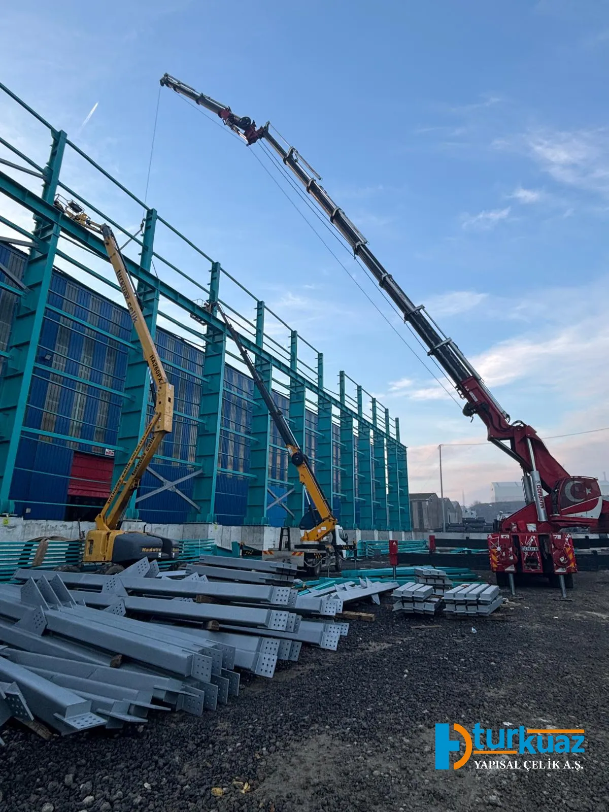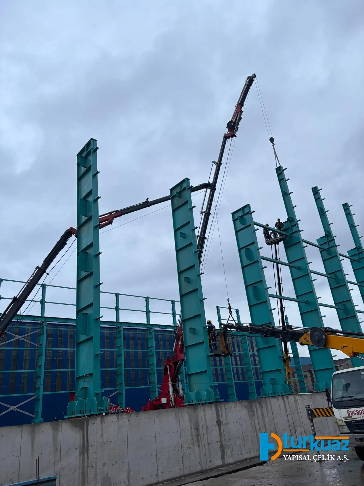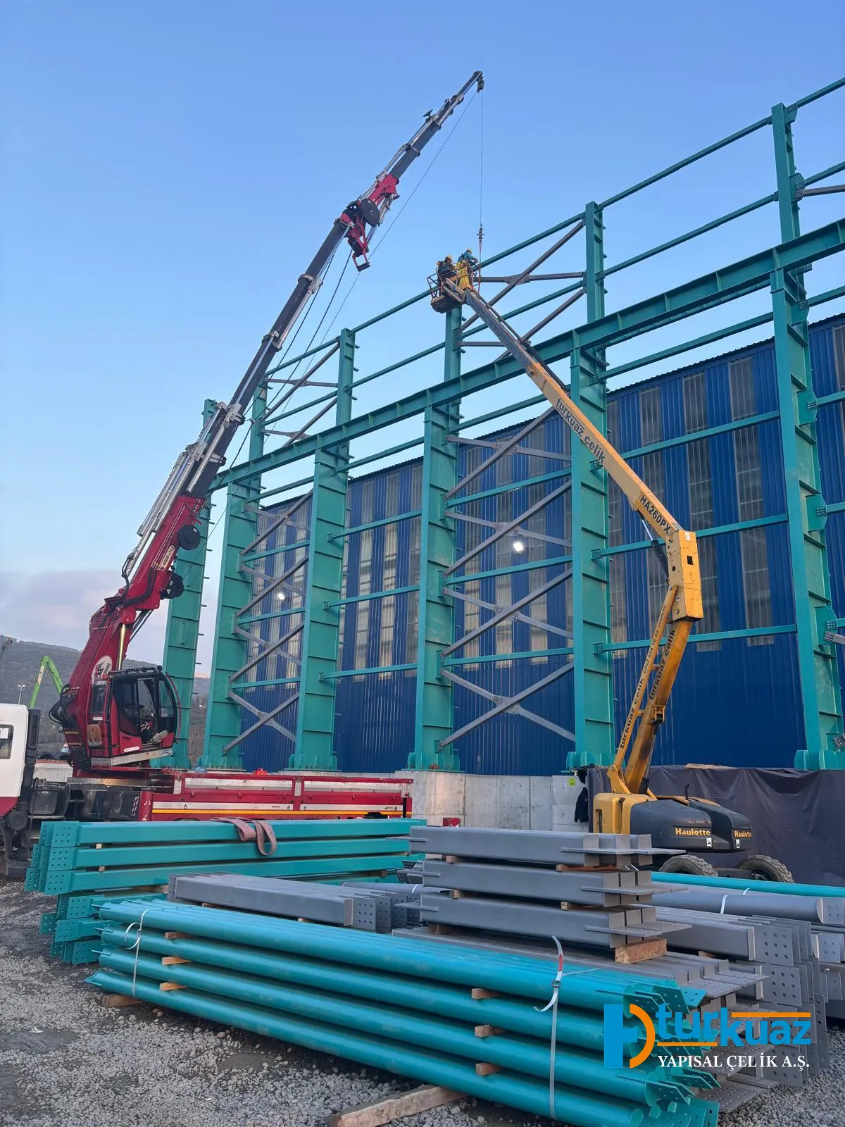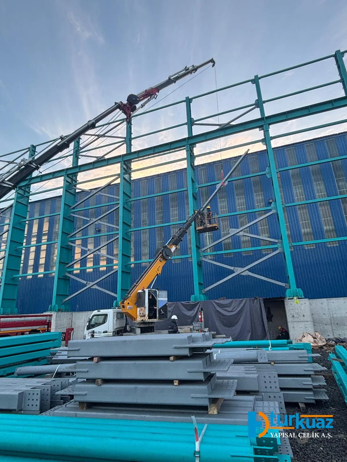"4.175 m² kapalı alana sahip ve toplam 1.050 ton çelik kullanılarak inşa edilen bu proje; modern mühendislik prensipleriyle tasarlanmış, geniş ve işlevsel iç mekanlara sahip, yüksek dayanıklılık standartlarında tamamlanmış bir çelik konstrüksiyon yapısıdır."