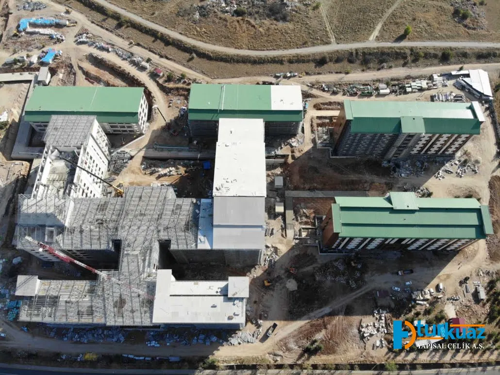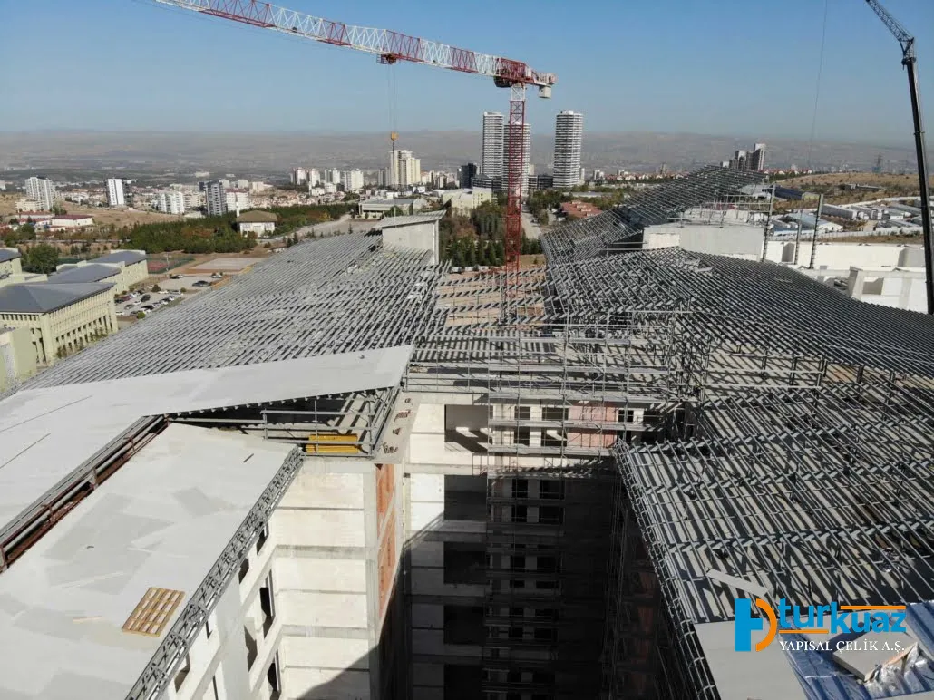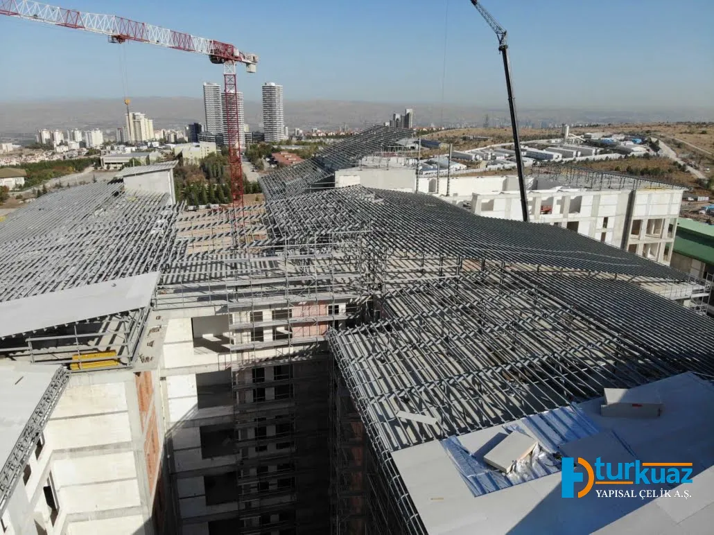 "6.100 m² genişliğinde bir yapı alanına sahip olan bu proje; 1.200 ton çelik konstrüksiyon ağırlığıyla inşa edilmiş, modern mühendislik detayları ve yüksek dayanıklılık standartlarıyla tamamlanmış güvenilir bir yapıdır."