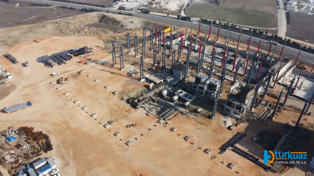 "21.000 m² genişliğinde ve 43 metre yüksekliğindeki bu devasa proje; 5.350 ton çelik konstrüksiyon ağırlığıyla endüstriyel ihtiyaçlara özel olarak tasarlanmış, yüksek dayanıklılığa sahip modern ve işlevsel bir yapıdır."