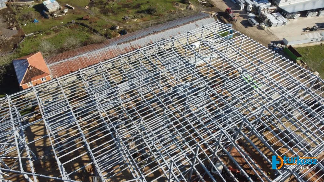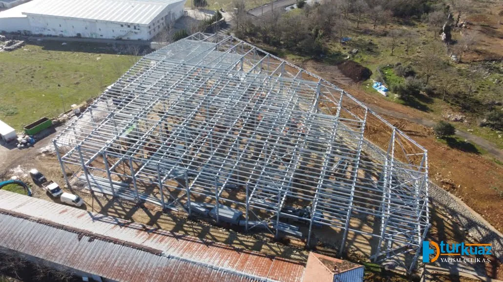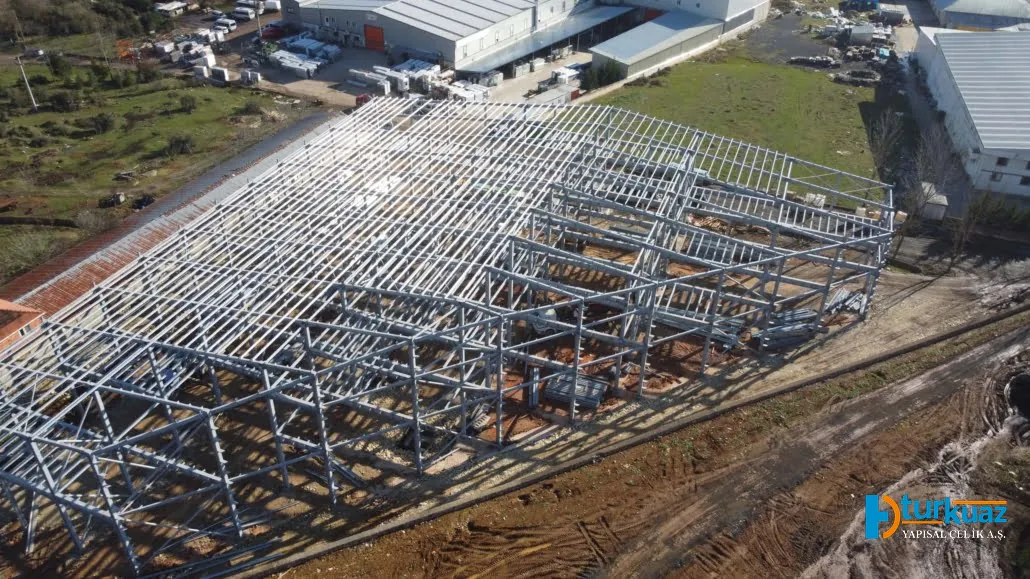 "5.000 m² çelik yapı alanı ve 7.500 m² kompozit döşeme uygulamasıyla hayata geçirilen bu proje; 800 ton çelik konstrüksiyon ağırlığı ve 7.500 m² genişliğindeki çatı-cephe kaplamasıyla, modern mühendislik detaylarını yüksek dayanıklılık standartlarıyla buluşturan güvenilir bir yapıdır."