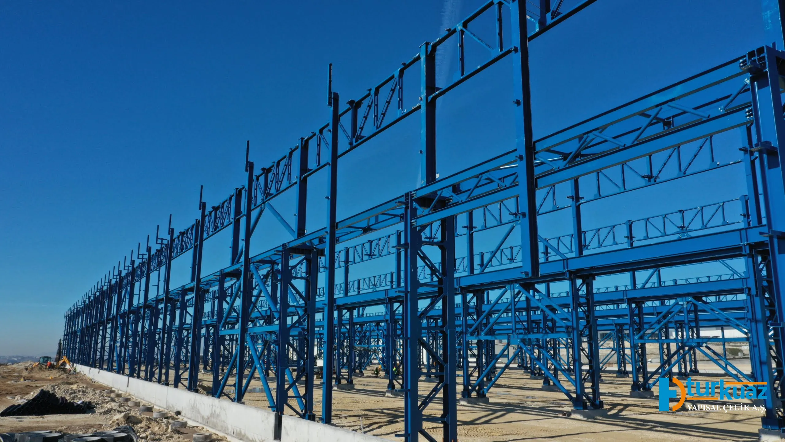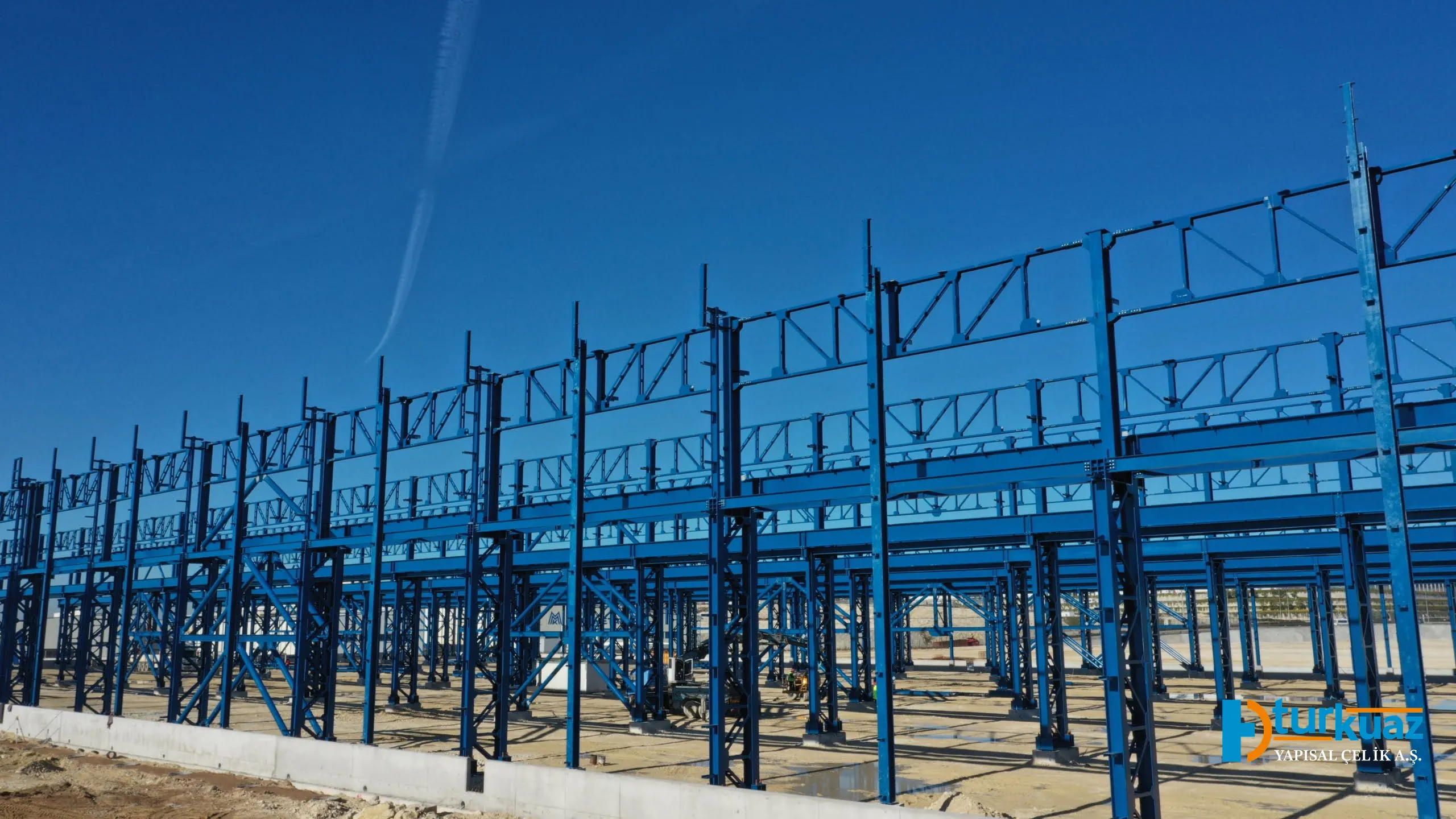 Bu proje; uzman mühendis, mimar ve saha ekiplerimizin koordinasyonunda; altyapı, elektrik-mekanik sistemler ve saha betonları dahil olmak üzere tamamen anahtar teslim olarak yürütülmüştür. 5.600 tonluk çelik imalatının kesme, kaynak ve montaj aşamaları uluslararası güvenlik standartlarında tamamlanmıştır. Her aşamada uygulanan hassas kalite kontrol testleri, projenin kusursuz bir mühendislik disipliniyle teslim edilmesini sağlamıştır.