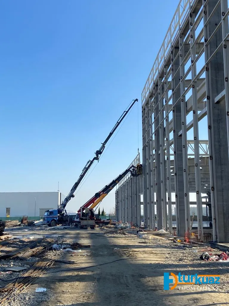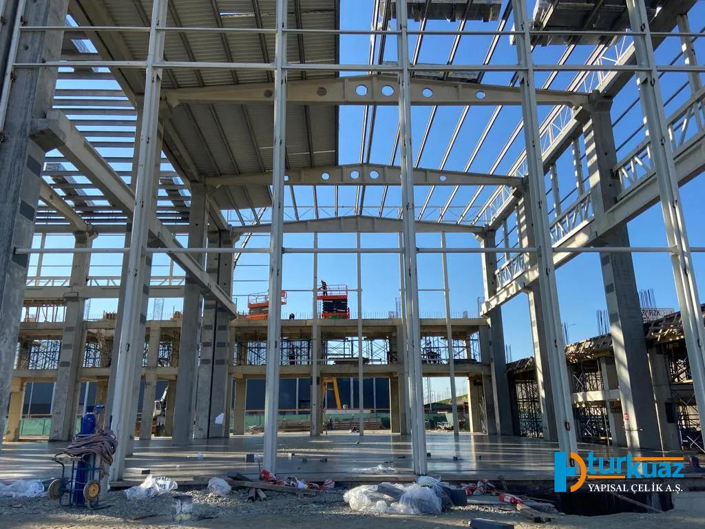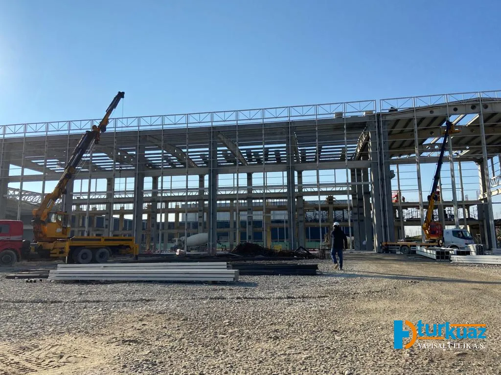 "10.000 m² genişliğinde bir yapı alanı (toplam 20.000 m² proje sahası) ve 500 ton çelik konstrüksiyon ağırlığıyla inşa edilen bu proje; modern mühendislik detaylarını, yüksek dayanıklılık standartlarını ve fonksiyonel mimariyi bir araya getiren güvenilir bir yapıdır."