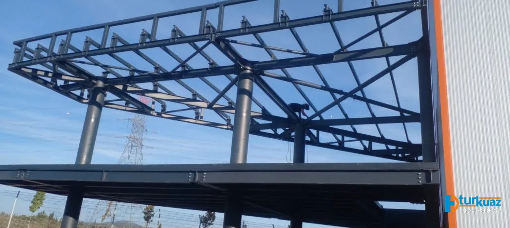 "2.000 m² genişliğinde bir yapı alanına sahip olan bu proje; 200 ton çelik konstrüksiyon ağırlığıyla inşa edilmiş, modern mühendislik detayları ve yüksek dayanıklılık standartlarıyla tamamlanmış işlevsel ve güvenilir bir yapıdır."