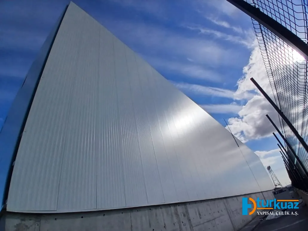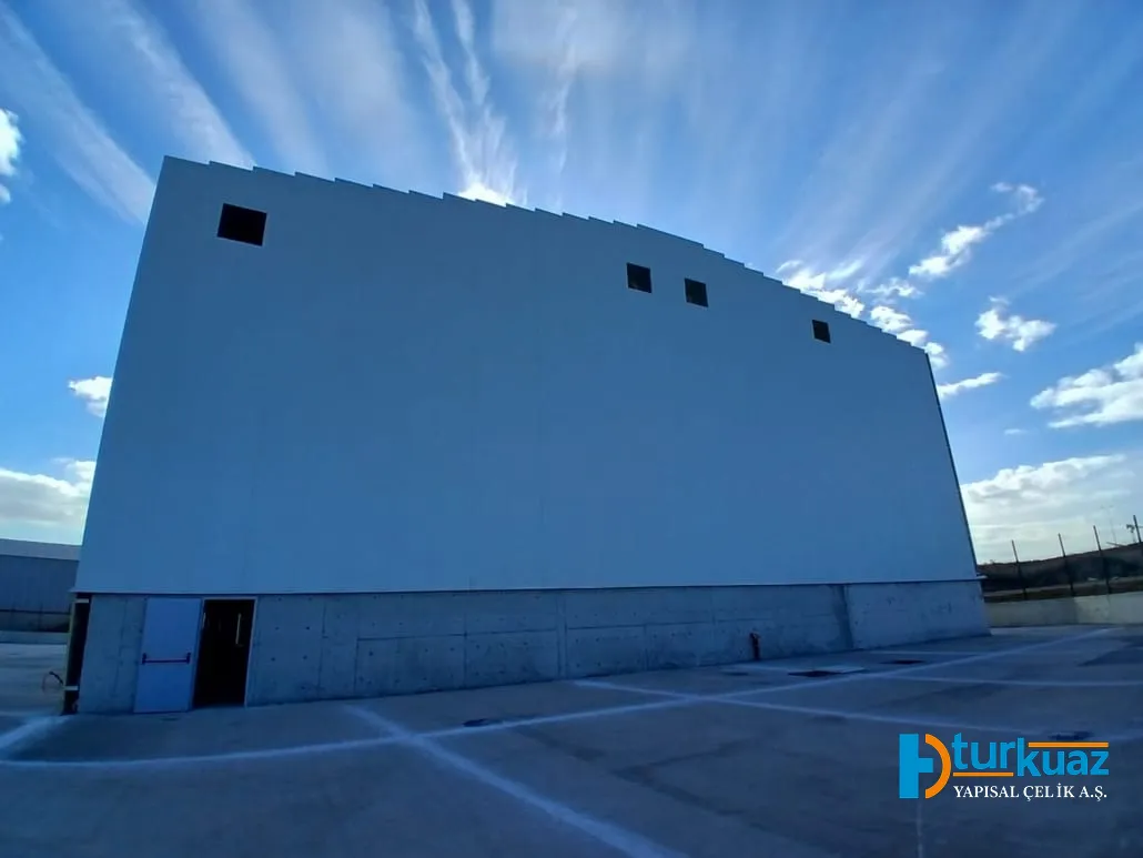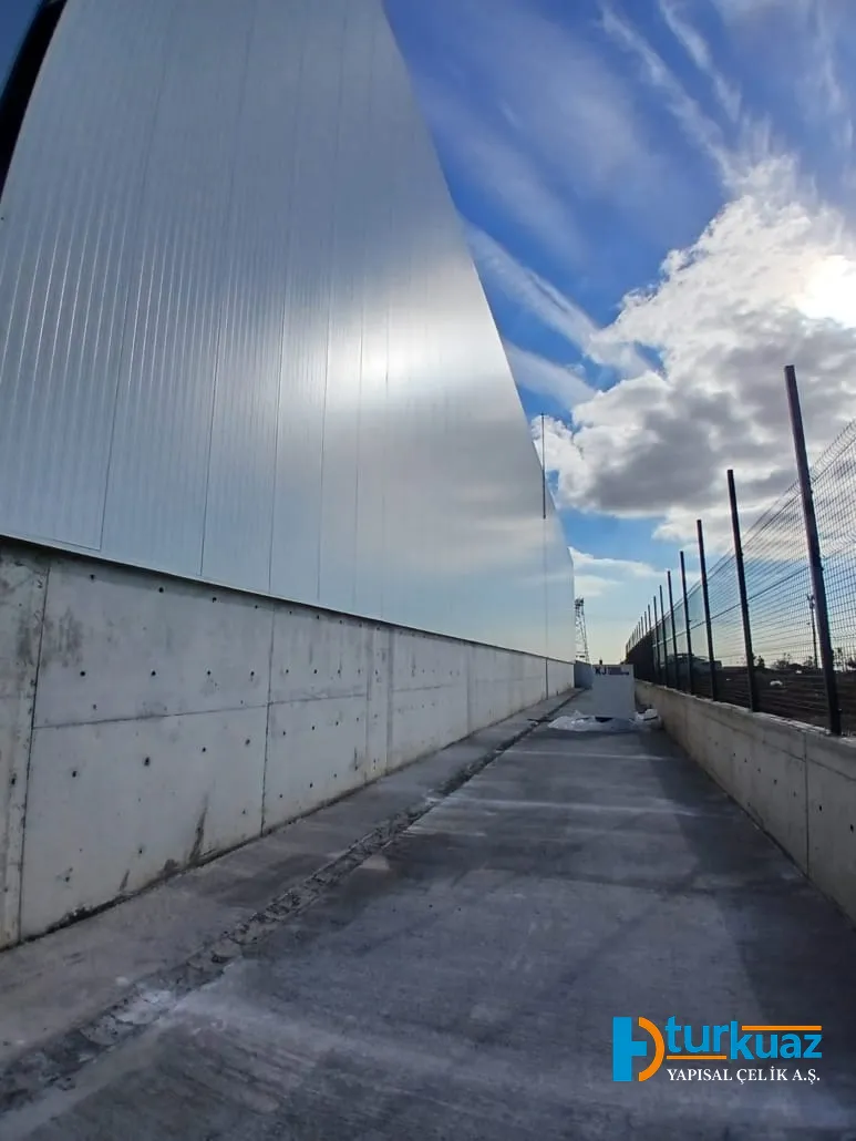 Çelik iskeletin inşasının ardından, yapının dış kimliğini oluşturan çatı ve cephe kaplama montajı uzman ekiplerimizce gerçekleştirilmiştir. Dayanıklılık ve yüksek izolasyon performansı kriterlerine göre seçilen birinci sınıf malzemeler, tesisin enerji verimliliğini artırırken; estetik ve fonksiyonelliği birleştiren modern bir endüstriyel görünüm sunmuştur.