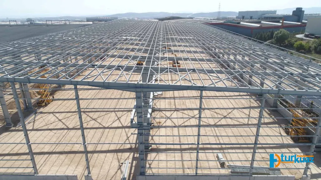 Toplam 46.000 m² inşaat alanına sahip bu proje, 5.500 ton ağır çelik konstrüksiyon kullanılarak yüksek taşıma kapasitesi ve sarsılmaz bir stabilite sunacak şekilde tasarlanmıştır. Temel aşamasında gerçekleştirilen 4.600 m²'lik titiz ankraj çalışması, yapının zeminle olan bağlantısını en üst düzeye çıkararak statik güvenliği garanti altına almıştır. Geniş açıklıklara ihtiyaç duyulan bu endüstriyel yapıda, çelik kolon ve gelişmiş çatı sistemleri ile maksimum operasyonel hacim hedeflenmiştir.